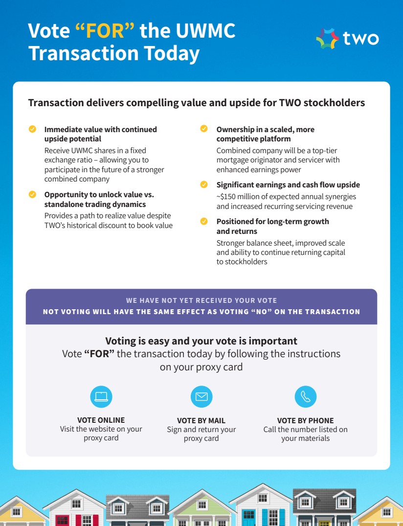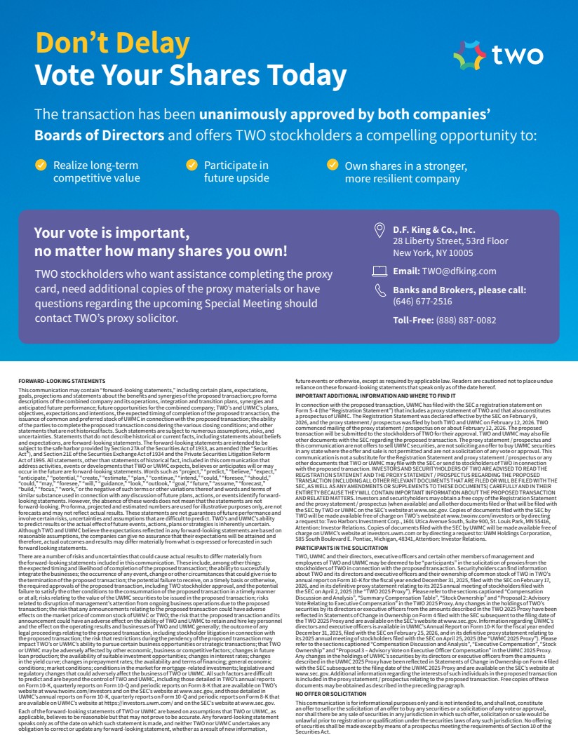 The following communication was sent to certain stockholders of Two Harbors Investment Corp. (“Two Harbors”) via email and ordinary mail on March 17, 2026 in connection with the proposed transaction between Two Harbors and UWM Holdings Corporation (“UWMC”).