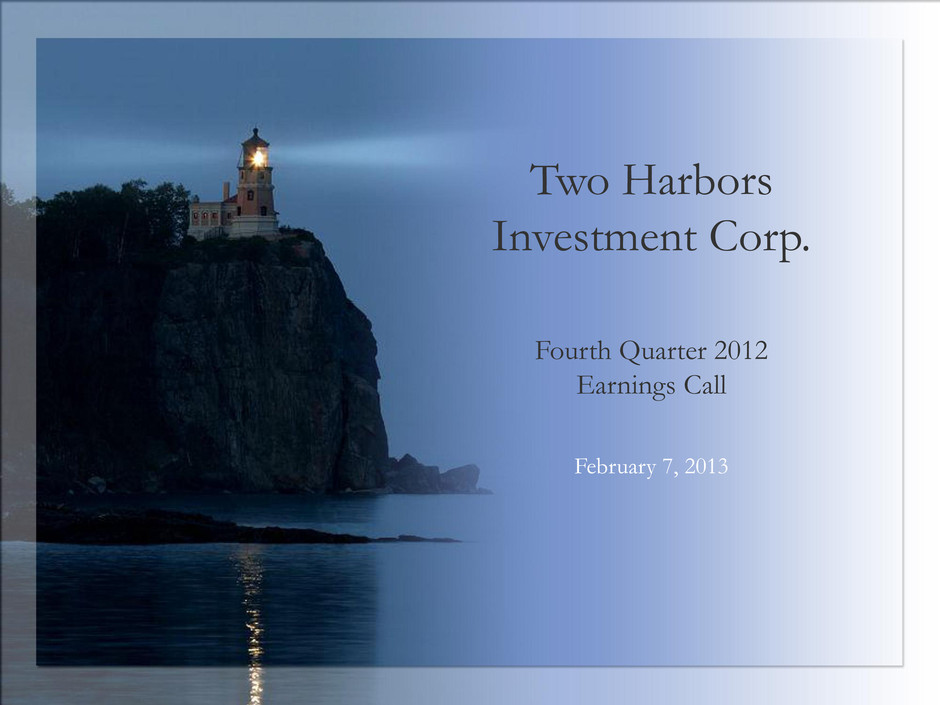 Two Harbors Investment Corp. Fourth Quarter 2012 Earnings Call February 7, 2013