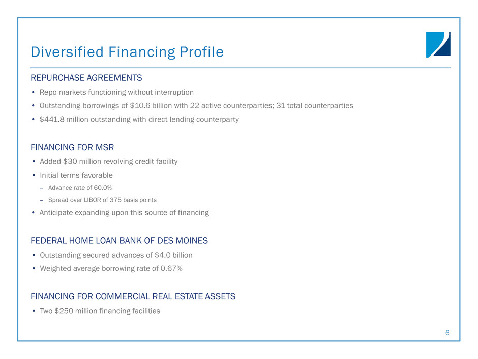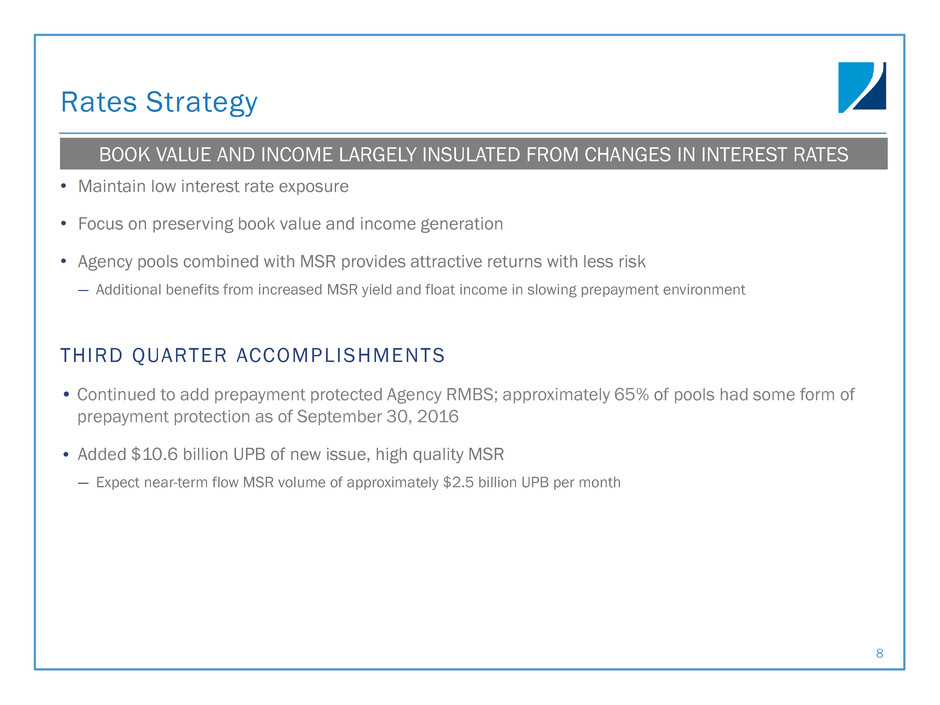• Continue to thoughtfully manage Agency portfolio and build out MSR position