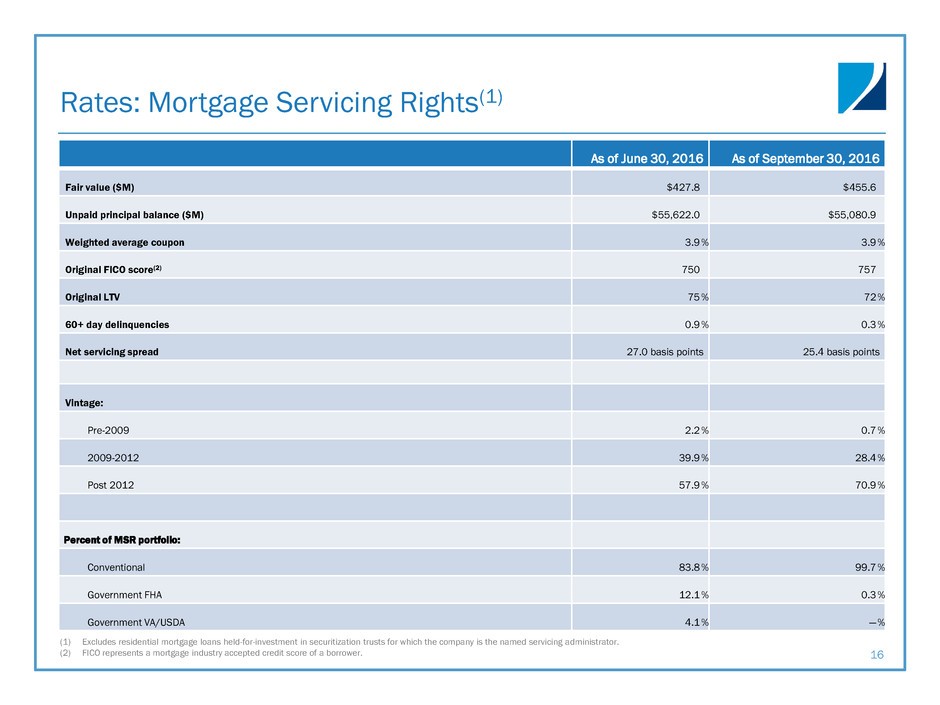 (1) Except as otherwise indicated in this presentation, reported data is as of or for the period ended September 30, 2016.