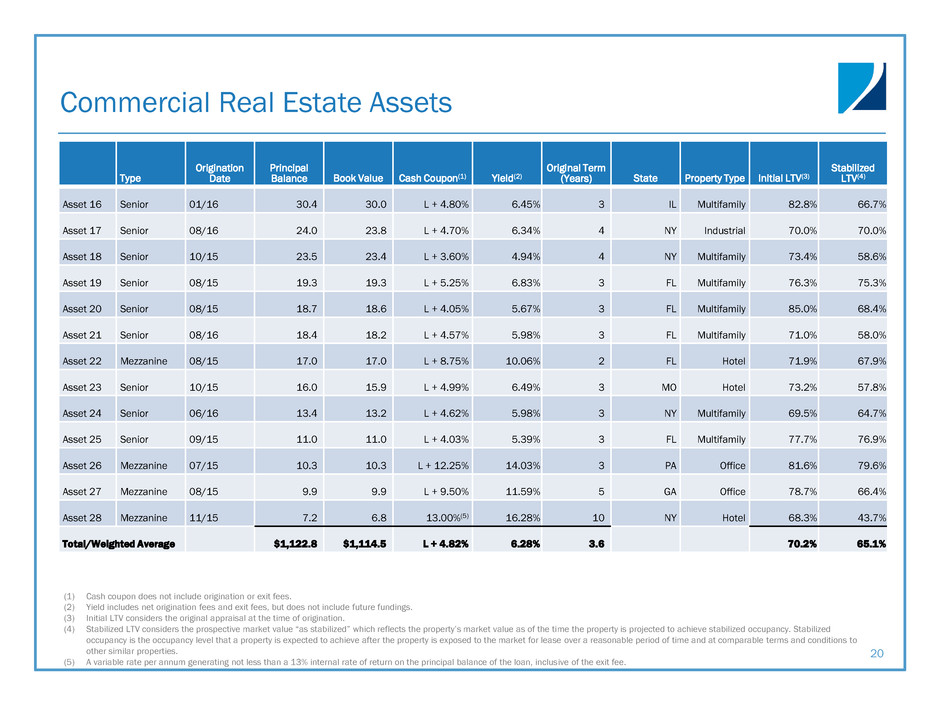 Asset 20 Senior 08/15 18.7 18.6 L + 4.05% 5.67 % 3 FL Multifamily 85.0 % 68.4 %