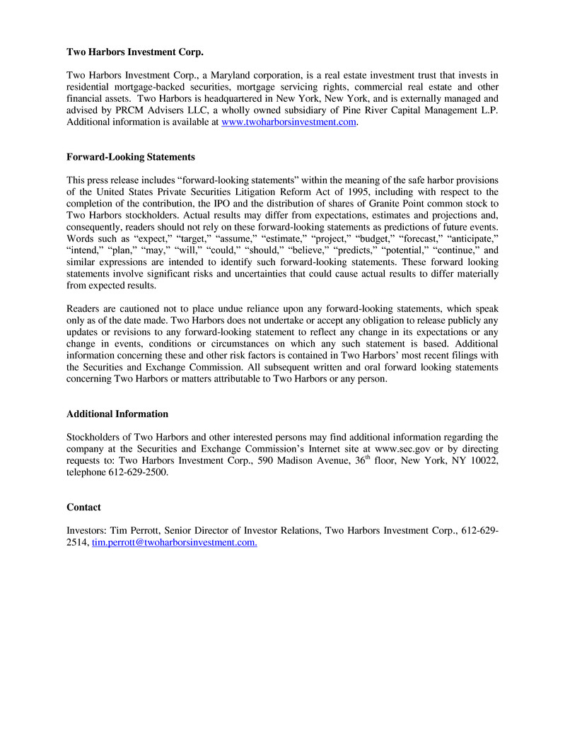 requests to: Two Harbors Investment Corp., 590 Madison Avenue, 36th floor, New York, NY 10022,