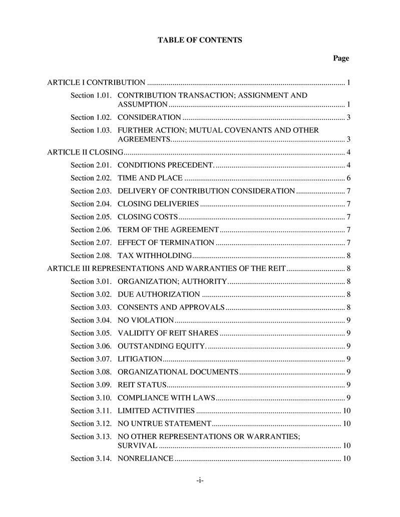 ARTICLE I CONTRIBUTION ..................................................................................................... 1