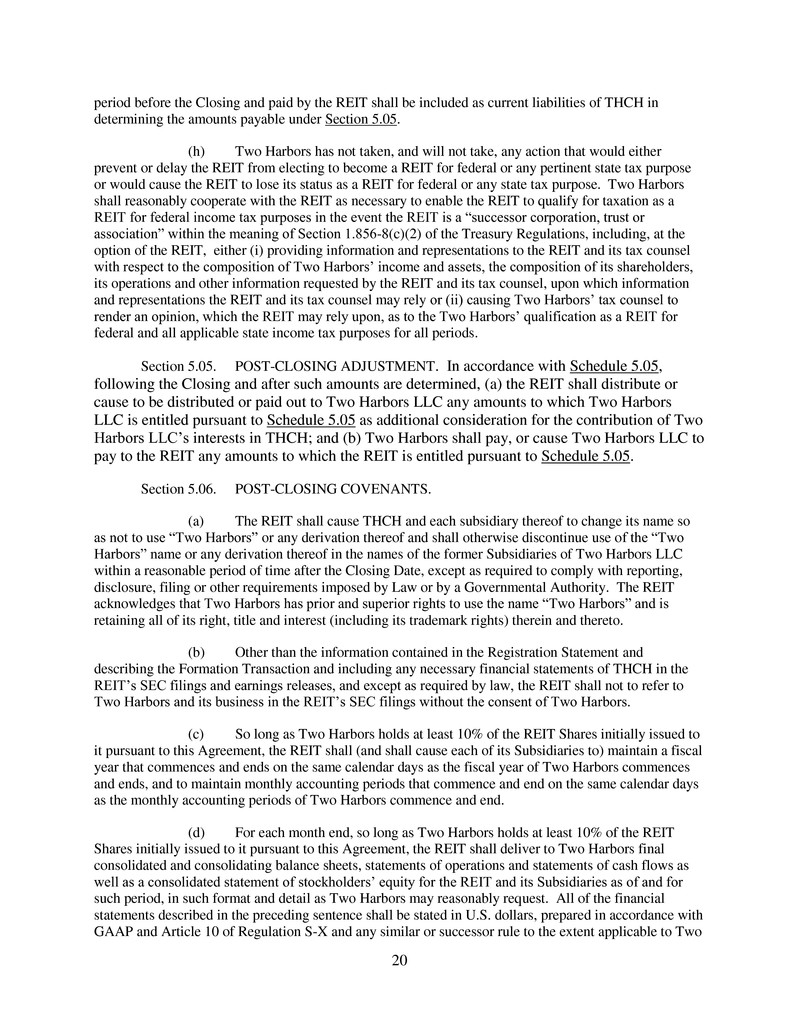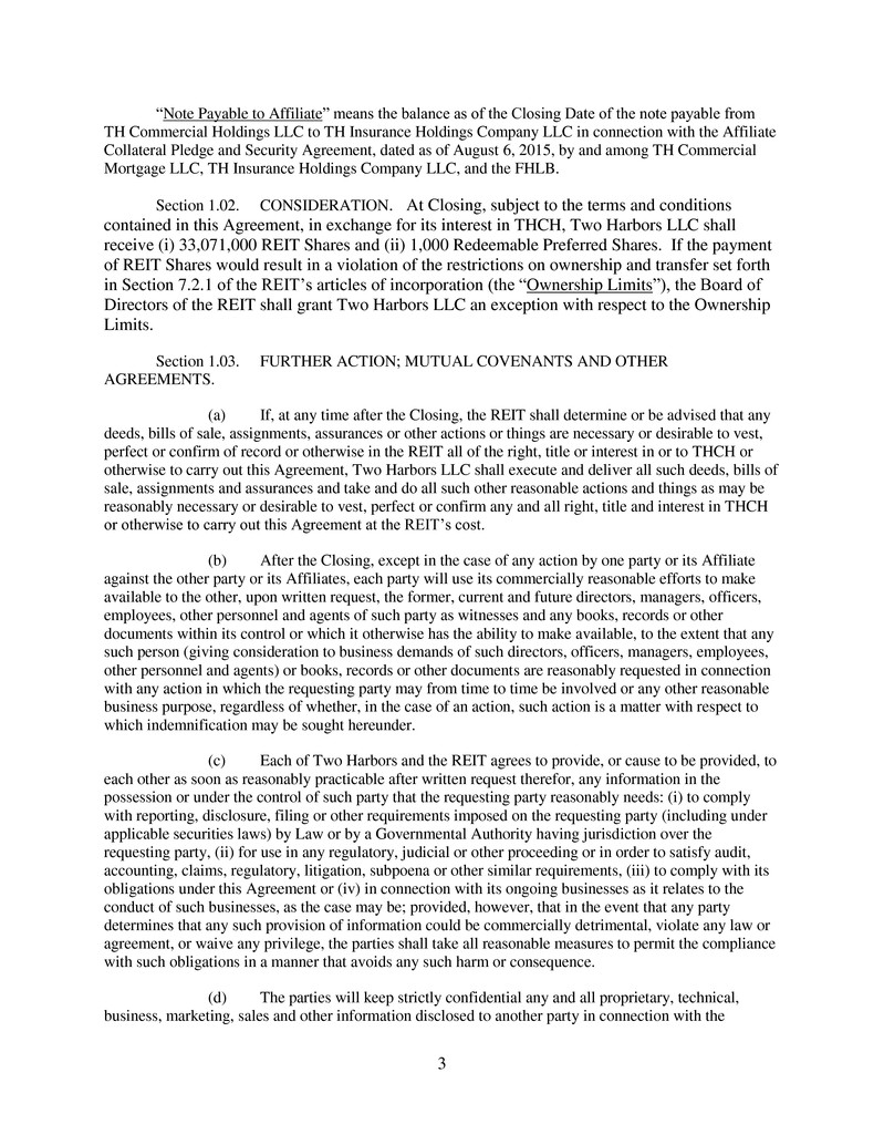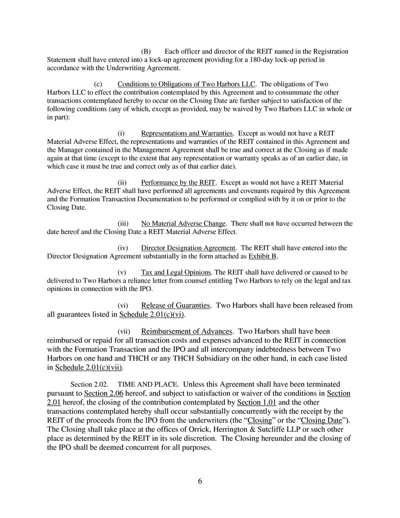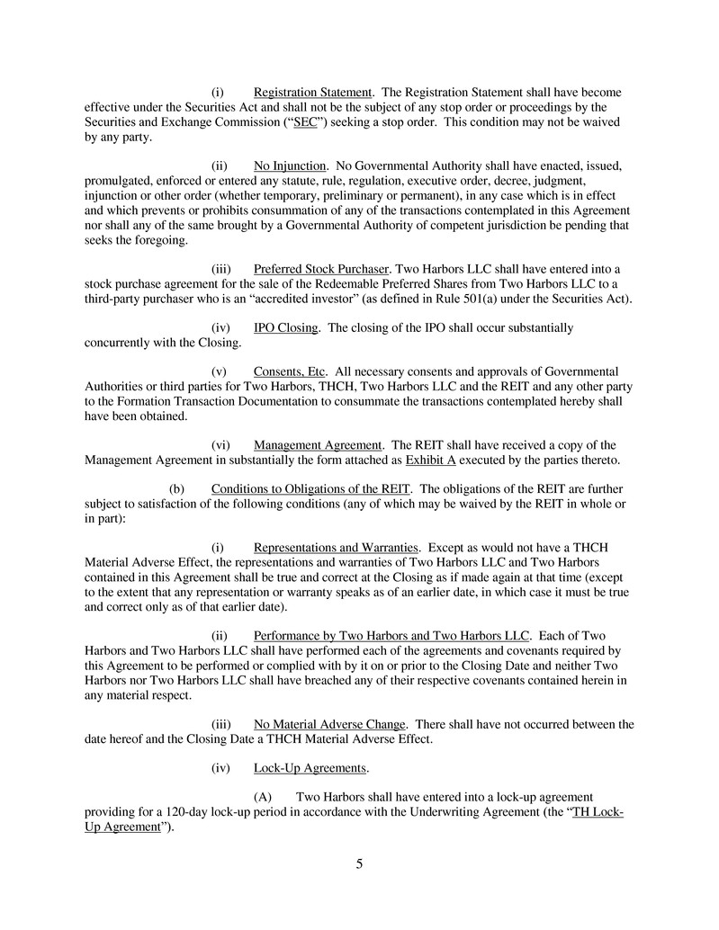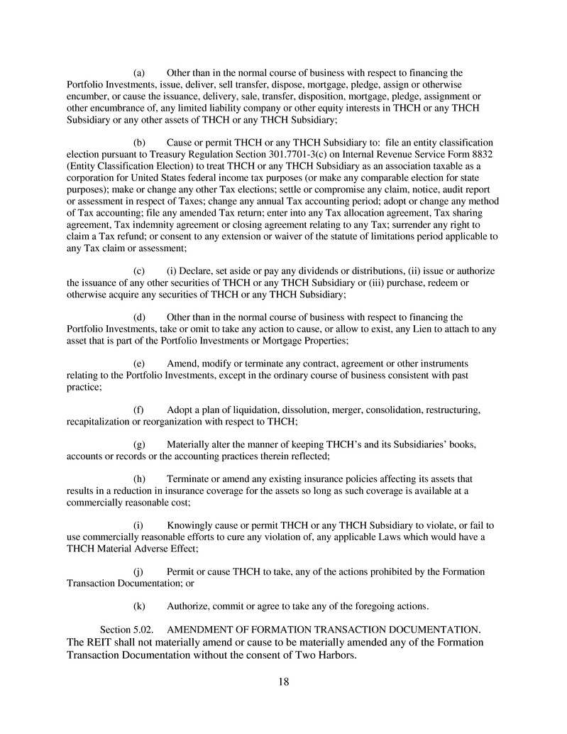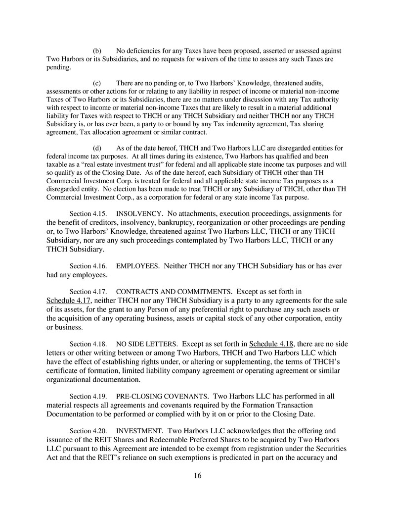 Section 5.01. PRE-CLOSING COVENANTS OF TWO HARBORS LLC .................. 17