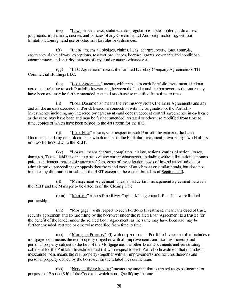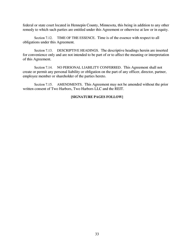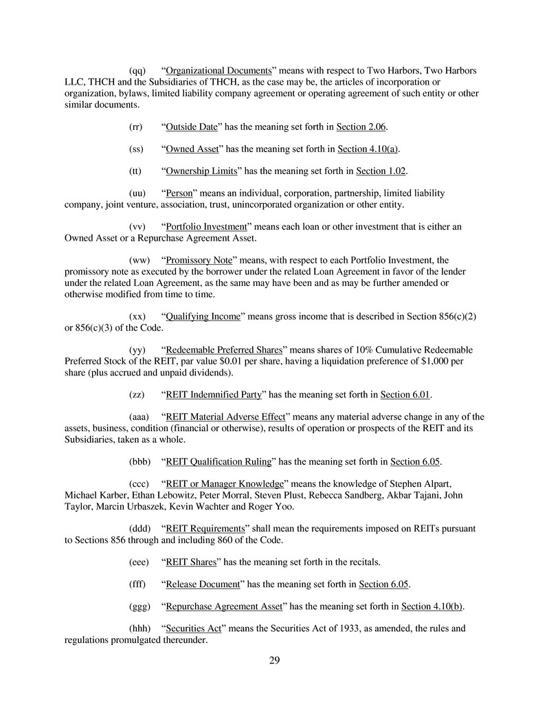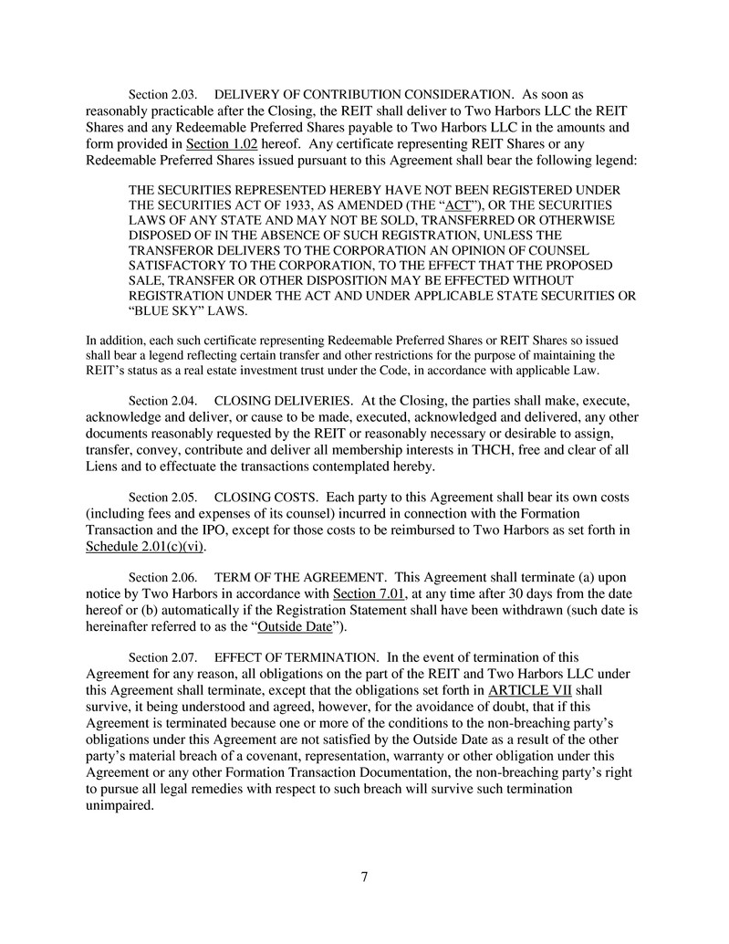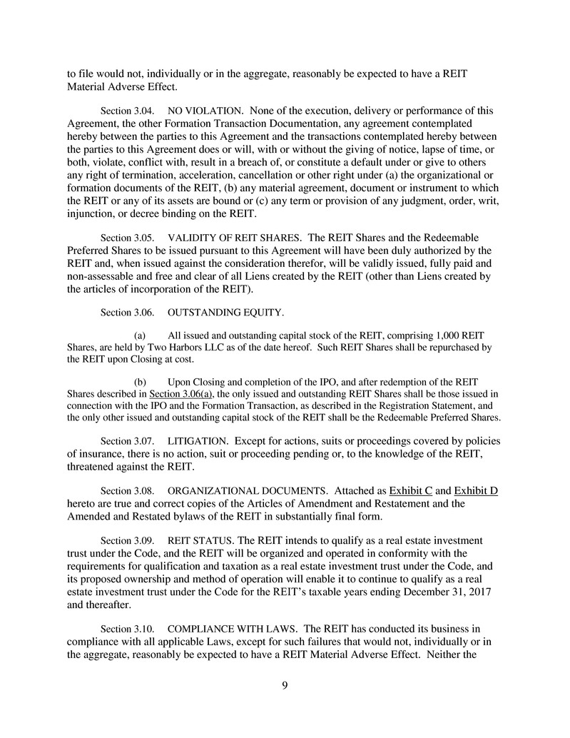 Section 5.01. PRE-CLOSING COVENANTS OF TWO HARBORS LLC .................. 17