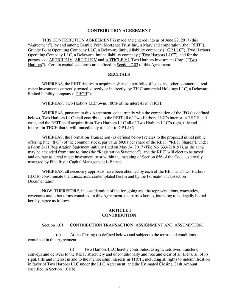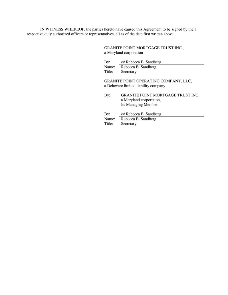 By: GRANITE POINT MORTGAGE TRUST INC.,