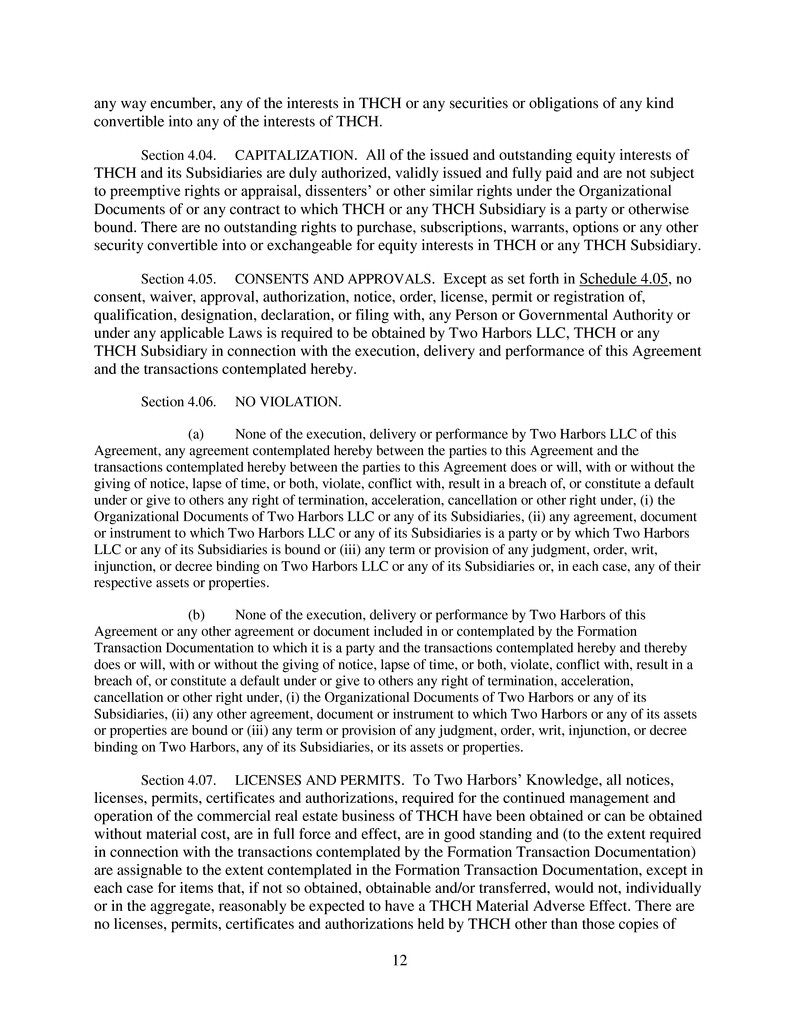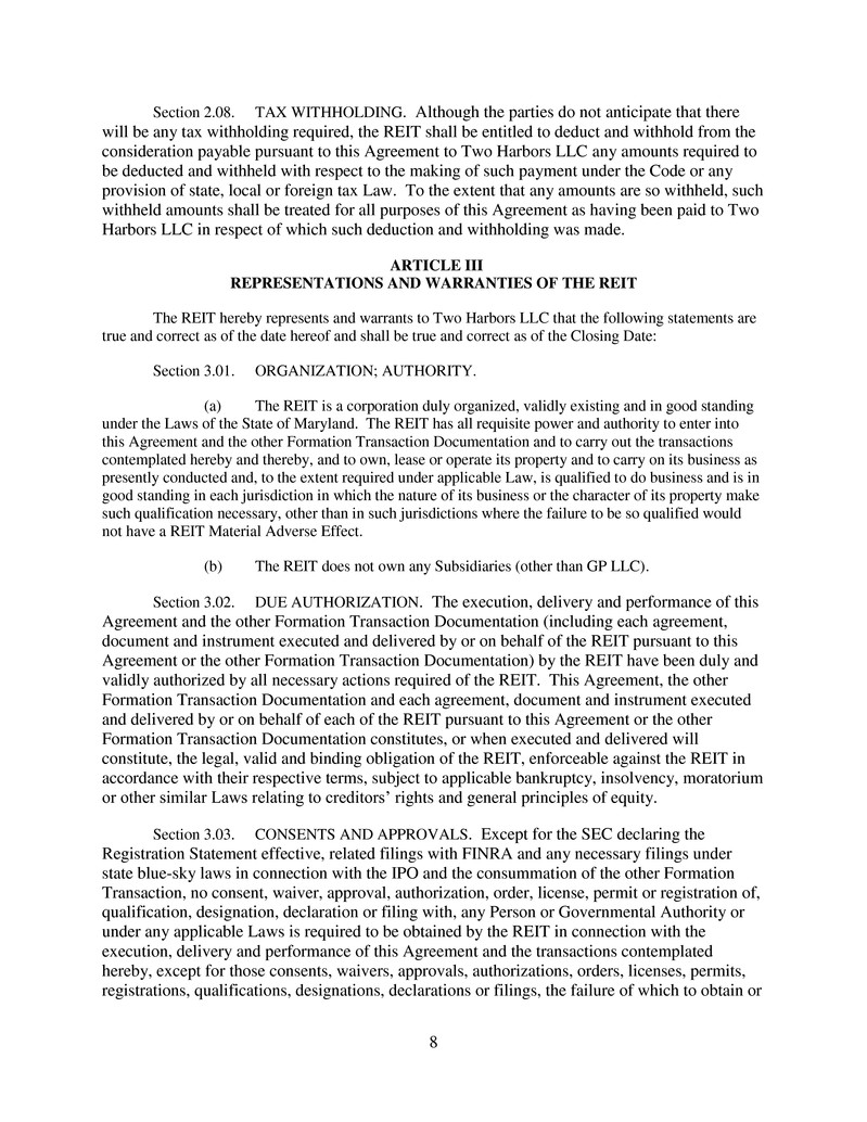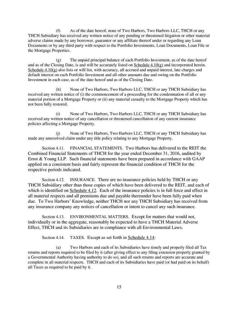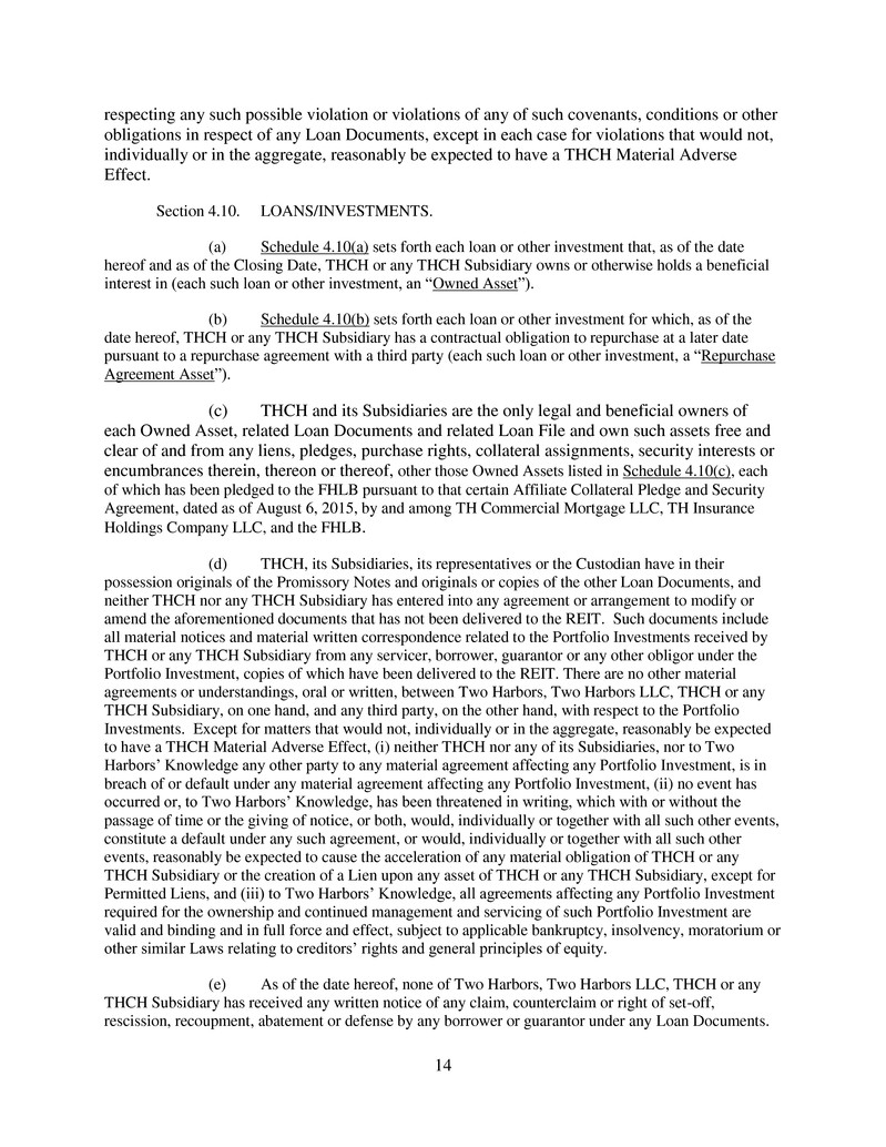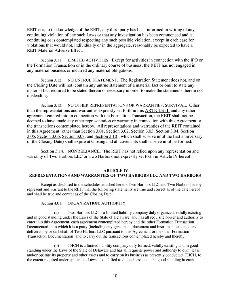 ARTICLE IV REPRESENTATIONS AND WARRANTIES OF TWO HARBORS LLC