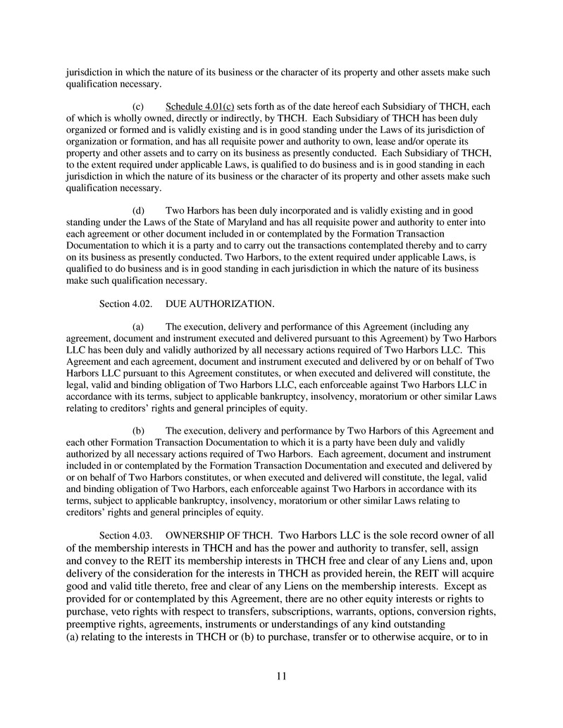 Section 4.03. OWNERSHIP OF THCH ........................................................................ 11
