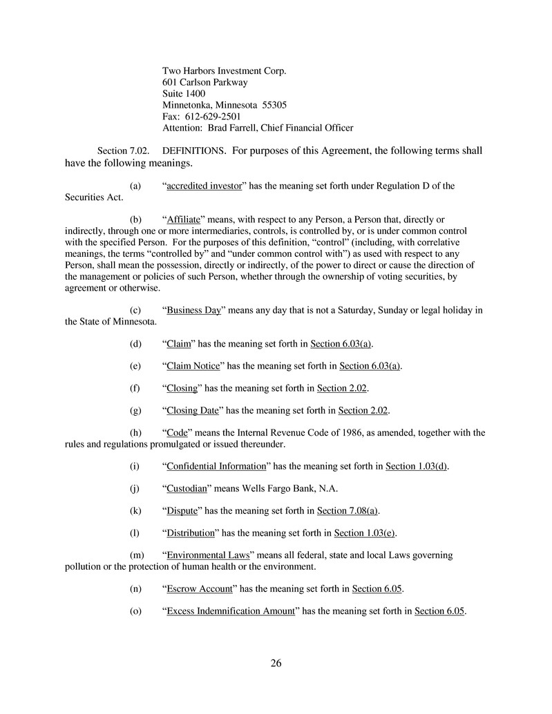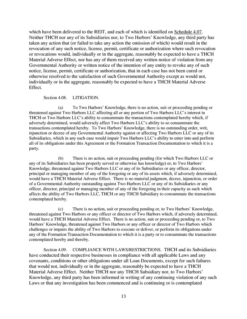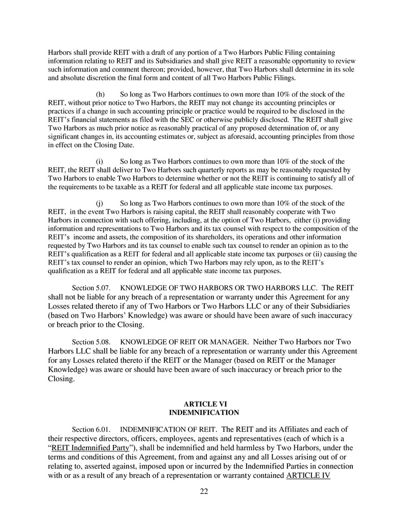 Section 5.07. KNOWLEDGE OF TWO HARBORS OR TWO HARBORS LLC ....... 22