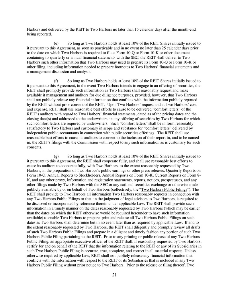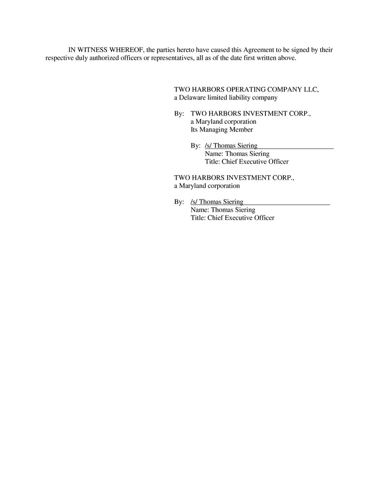 written consent of Two Harbors, Two Harbors LLC and the REIT.
