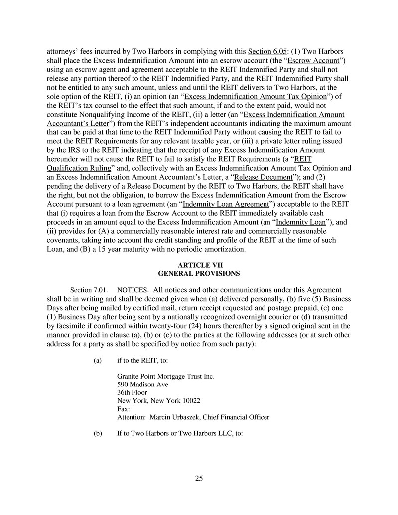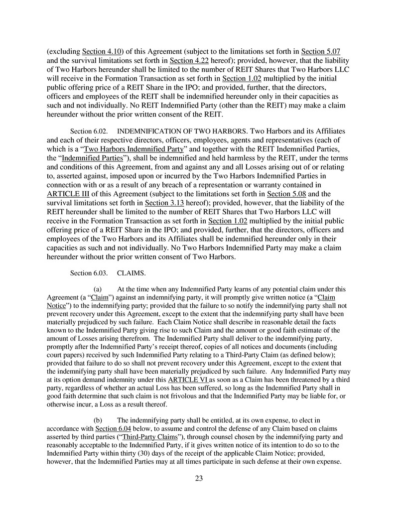 Section 6.02. INDEMNIFICATION OF TWO HARBORS ......................................... 23