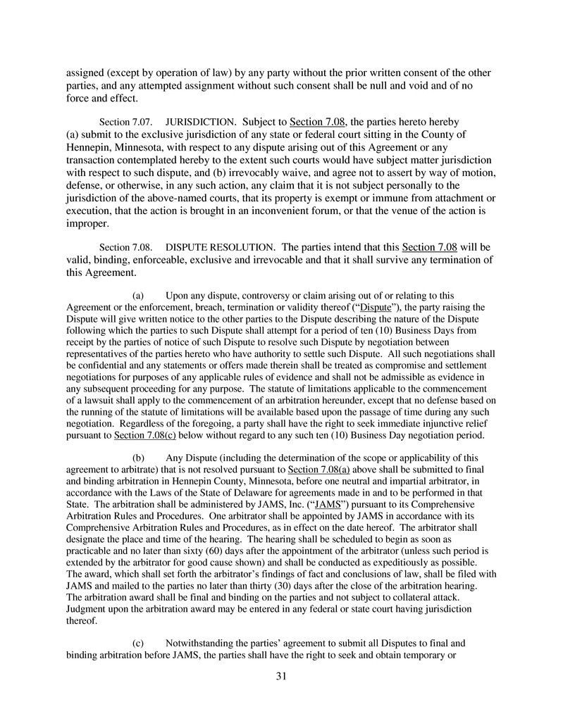 Section 7.08. DISPUTE RESOLUTION ....................................................................... 31