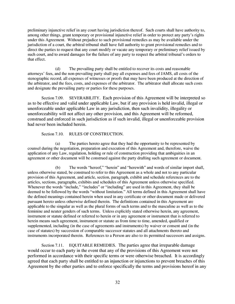 Section 7.11. EQUITABLE REMEDIES. The parties agree that irreparable damage