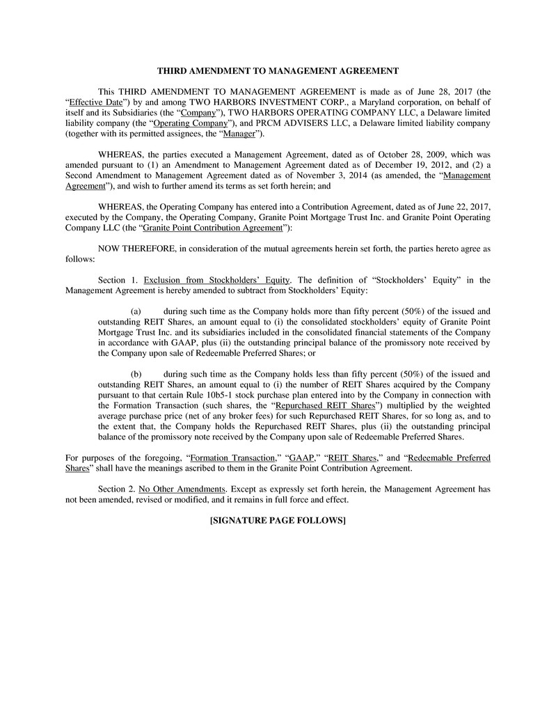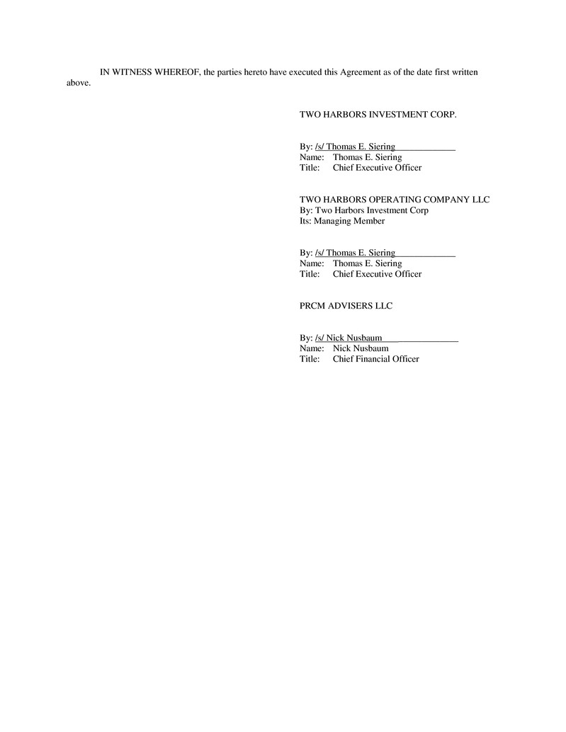 “Effective Date”) by and among TWO HARBORS INVESTMENT CORP., a Maryland corporation, on behalf of
