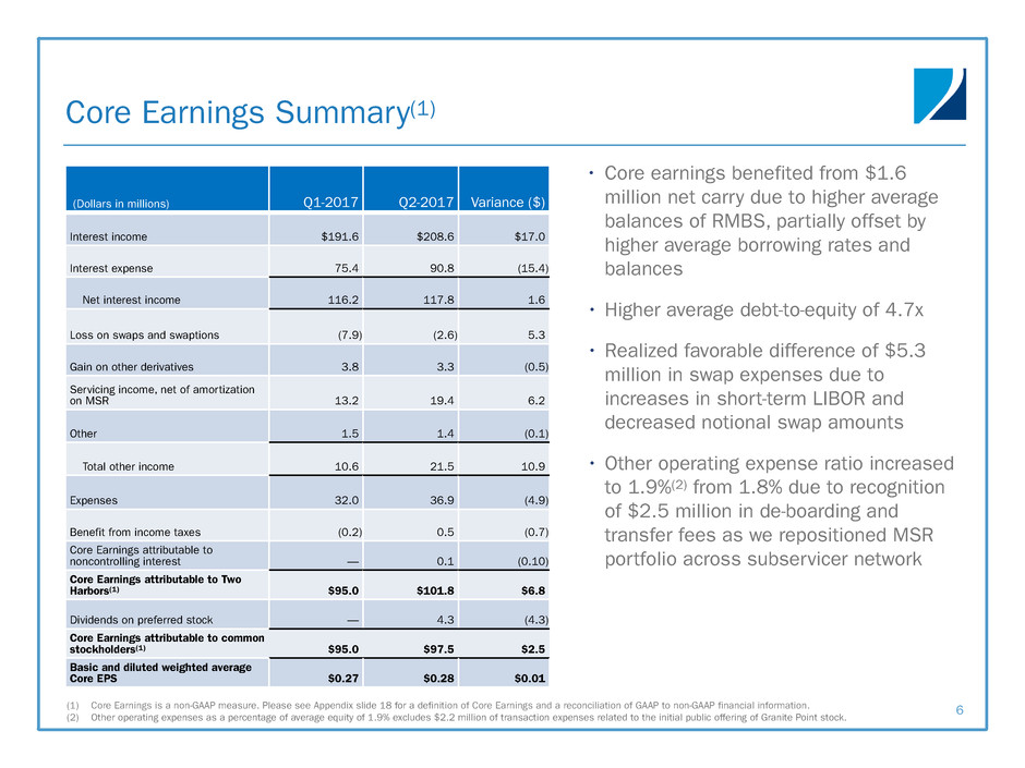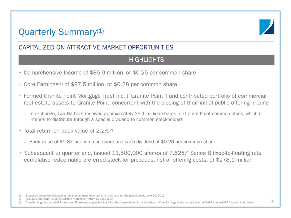(3) Core Earnings is a non-GAAP measure. Please see Appendix slide 18 of this presentation for a definition of Core Earnings and a reconciliation of GAAP to non-GAAP financial information.