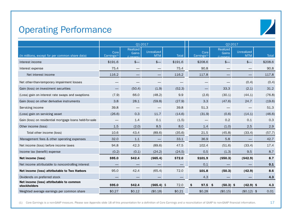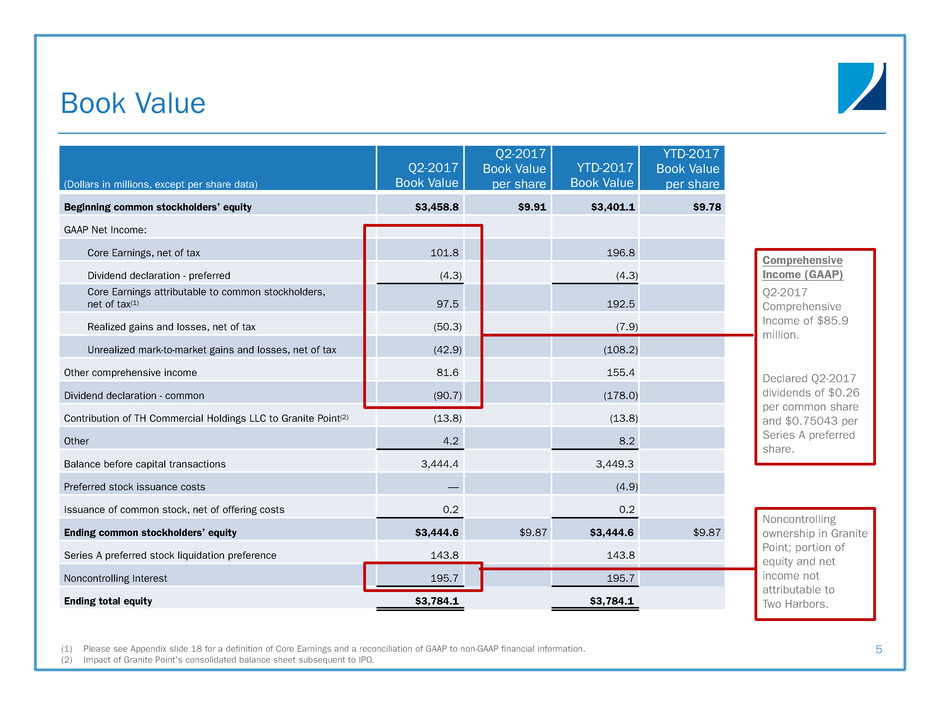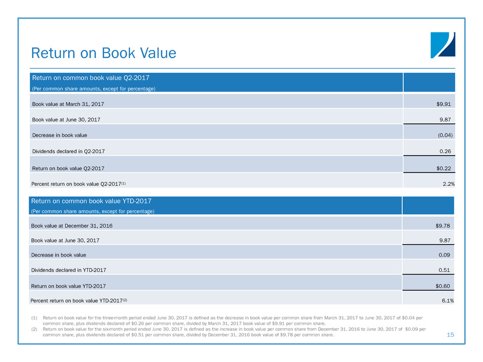 (2) See Appendix slide 15 for calculation of Q2-2017 return on book value.