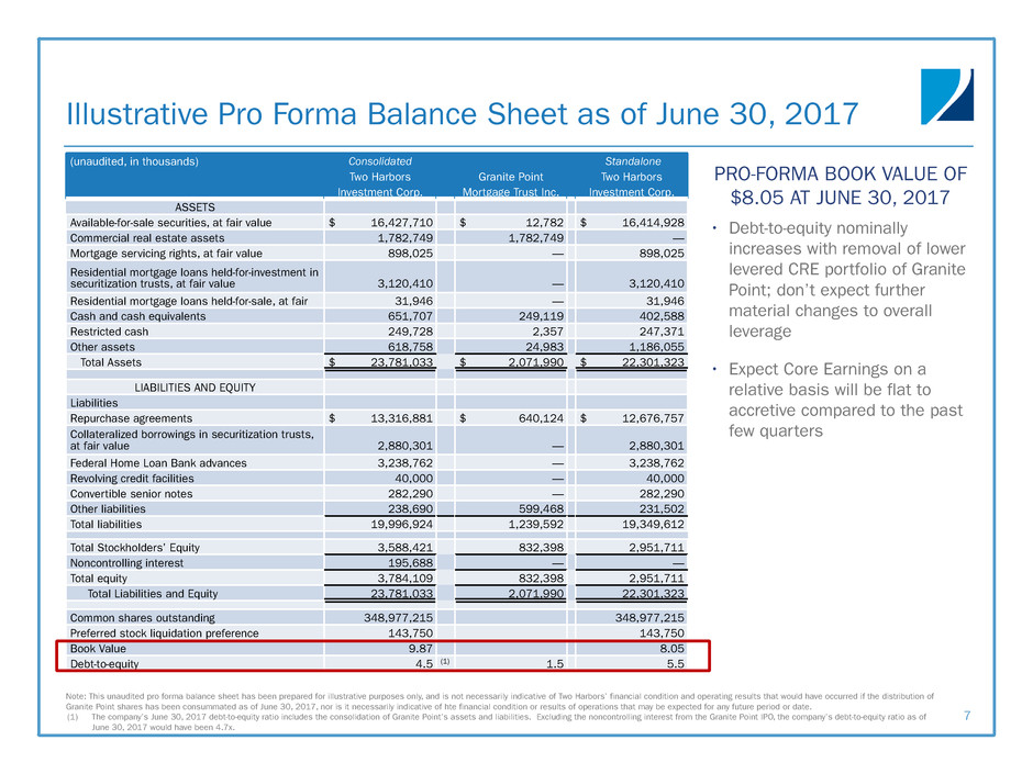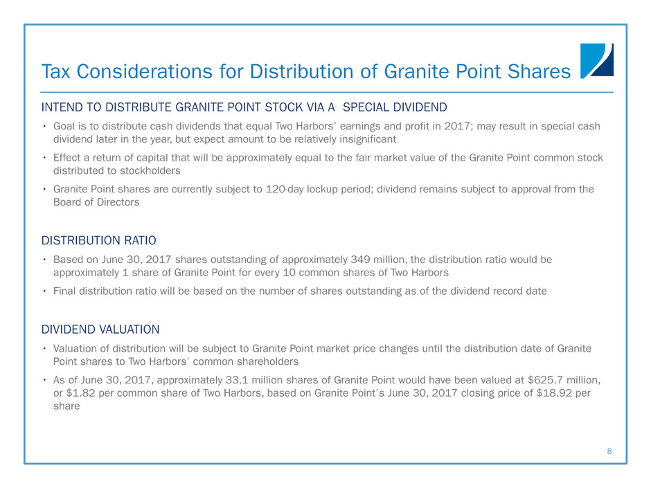 – In exchange, Two Harbors received approximately 33.1 million shares of Granite Point common stock, which it