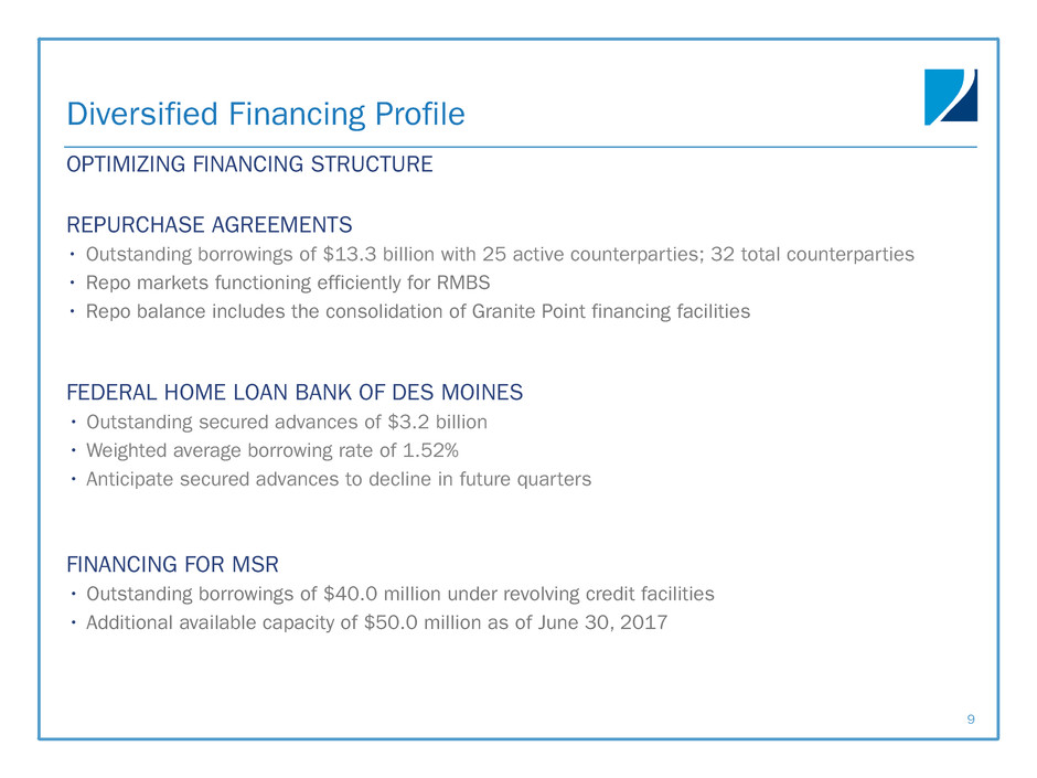 • Subsequent to quarter end, issued 11,500,000 shares of 7.625% Series B fixed-to-floating rate