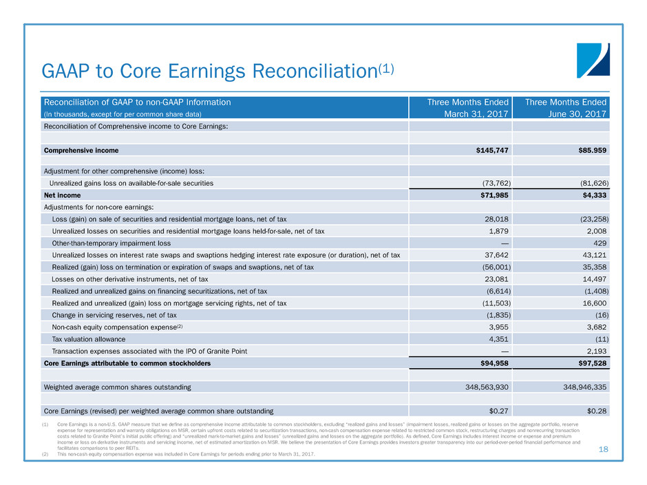 (1) Please see Appendix slide 18 for a definition of Core Earnings and a reconciliation of GAAP to non-GAAP financial information.