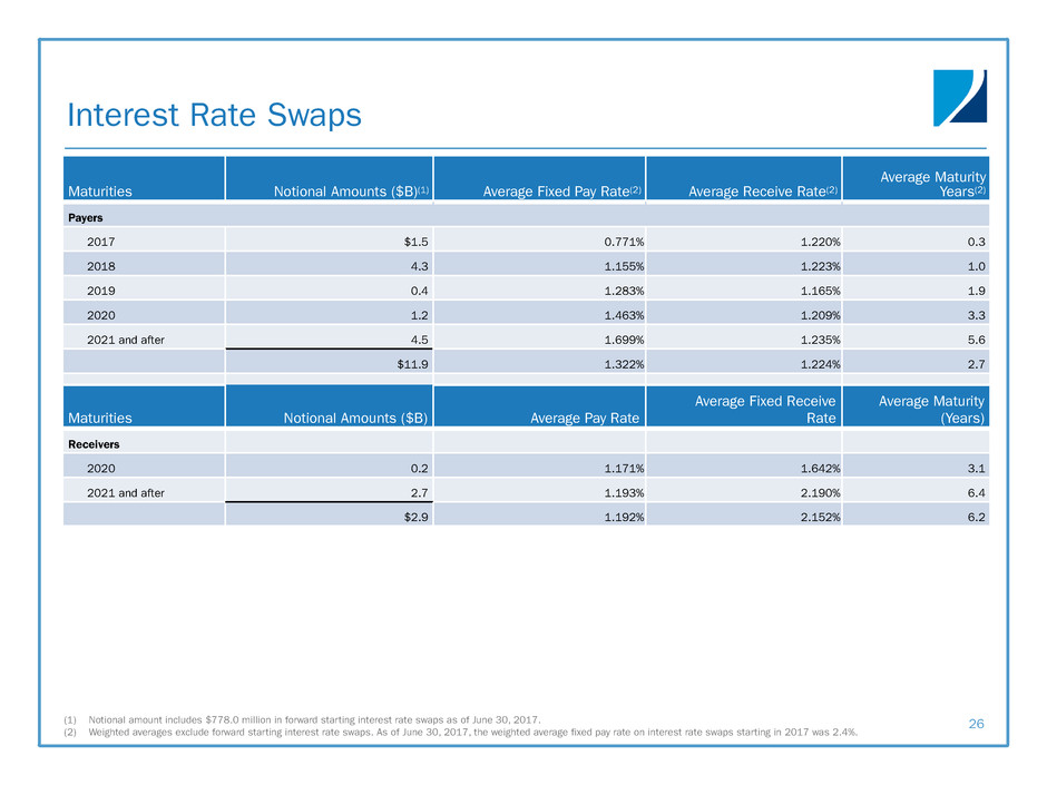 (2) Weighted averages exclude forward starting interest rate swaps. As of June 30, 2017, the weighted average fixed pay rate on interest rate swaps starting in 2017 was 2.4%.