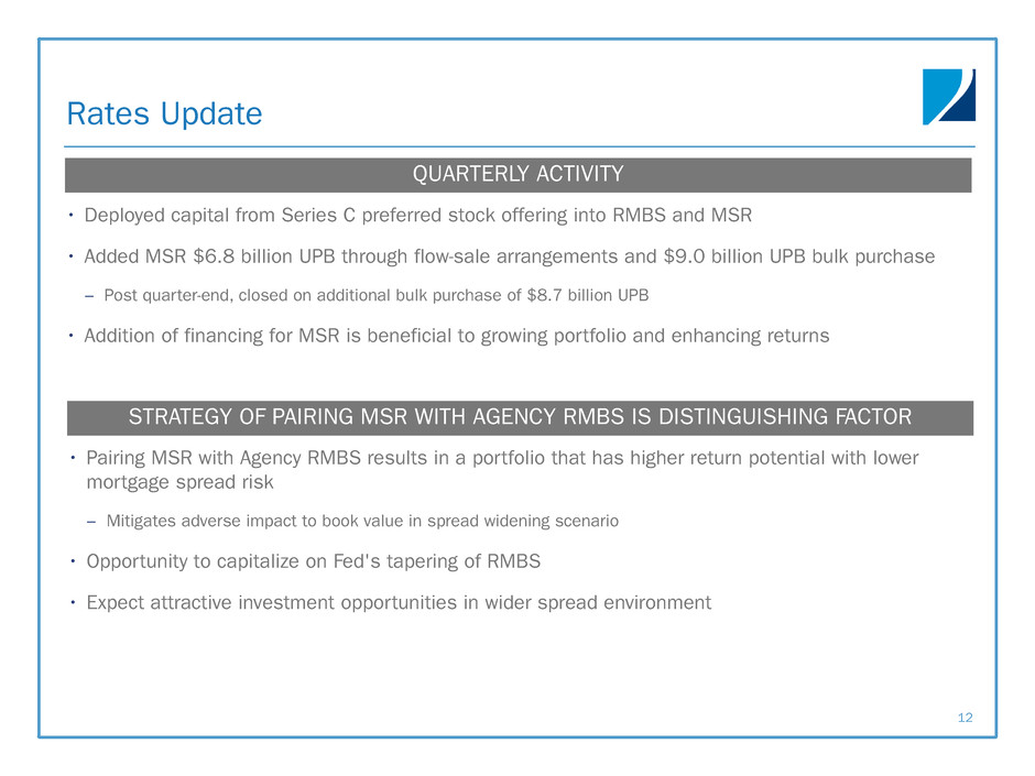 Attractive investment opportunities in target assets Opportunistically added Agency and non-Agency RMBS; grew portfolio of high-