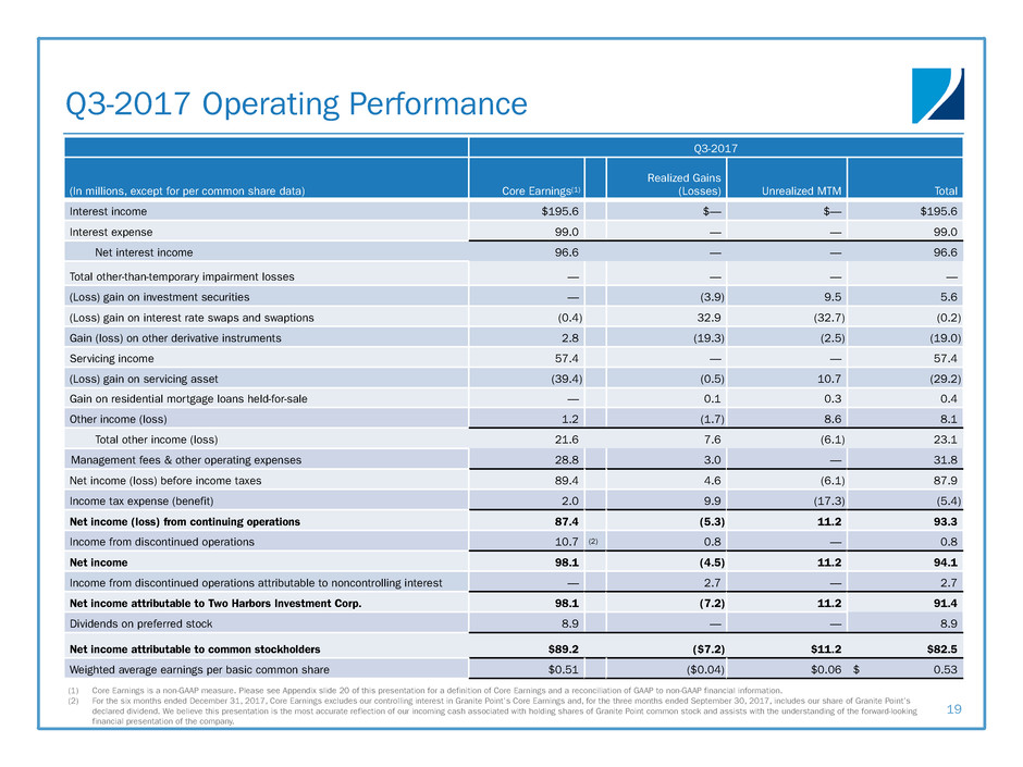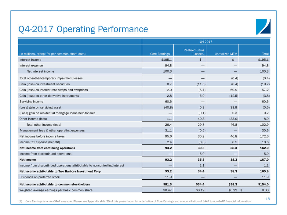 (2) Core Earnings is a non-GAAP measure. Please see Appendix slide 20 of this presentation for a definition of Core Earnings and a reconciliation of GAAP to non-GAAP financial information.