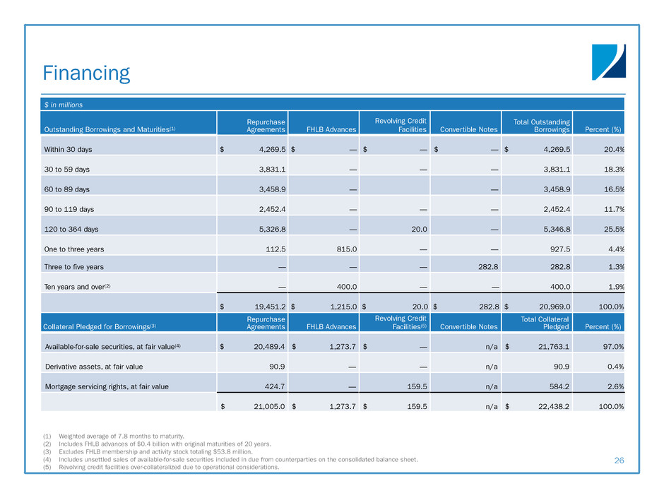 (2) Includes FHLB advances of $0.4 billion with original maturities of 20 years.