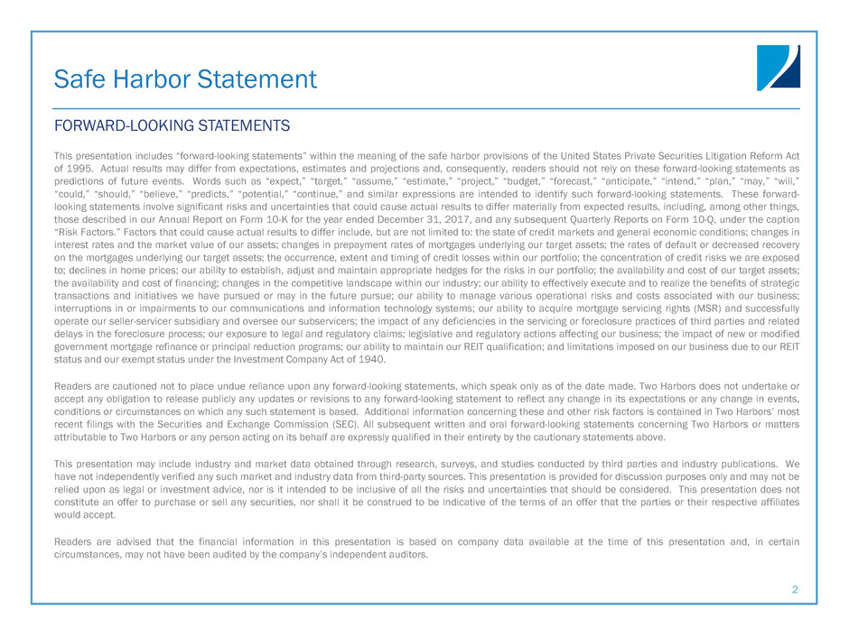 Readers are cautioned not to place undue reliance upon any forward-looking statements, which speak only as of the date made. Two Harbors does not undertake or