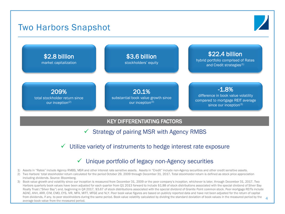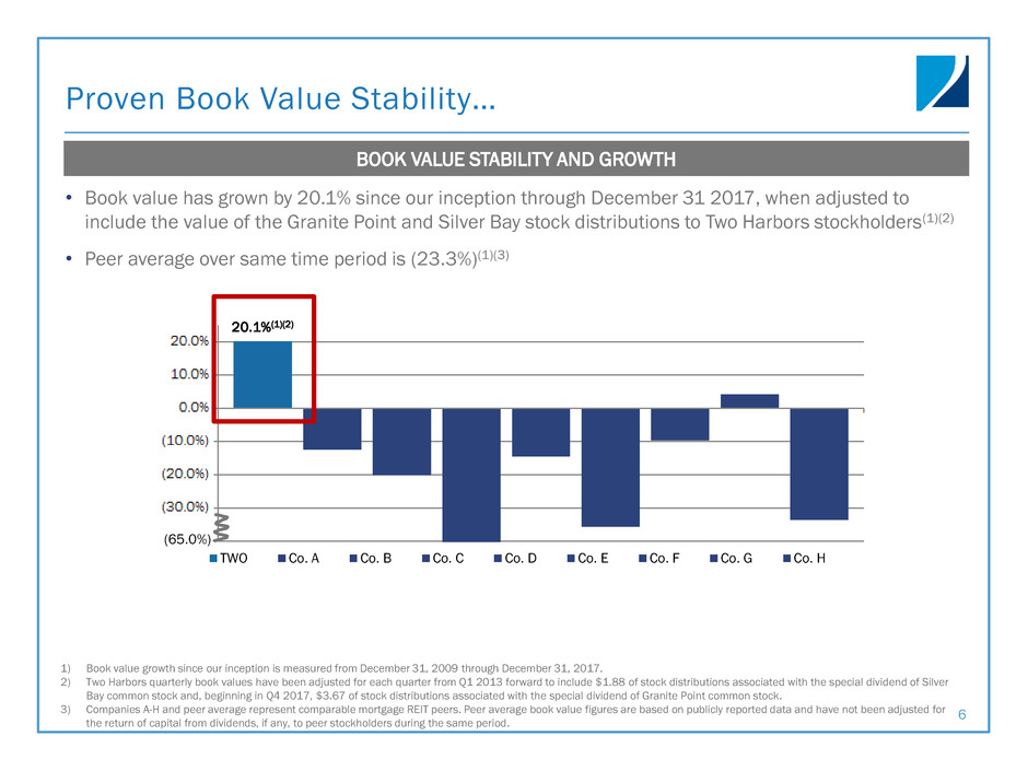 2) Two Harbors’ total stockholder return calculated for the period October 29, 2009 through December 31, 2017. Total stockholder return is defined as stock price appreciation