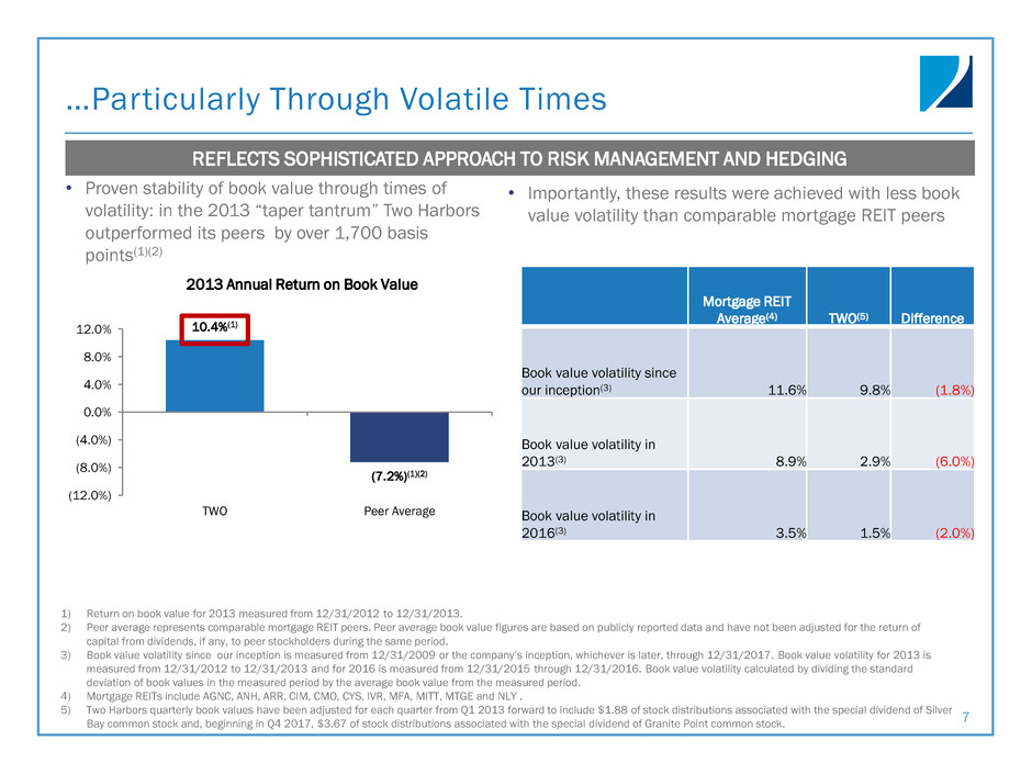 3) Book value growth and volatility since our inception is measured from December 31, 2009 or the peer company’s inception, whichever is later, through December 31, 2017. Two
