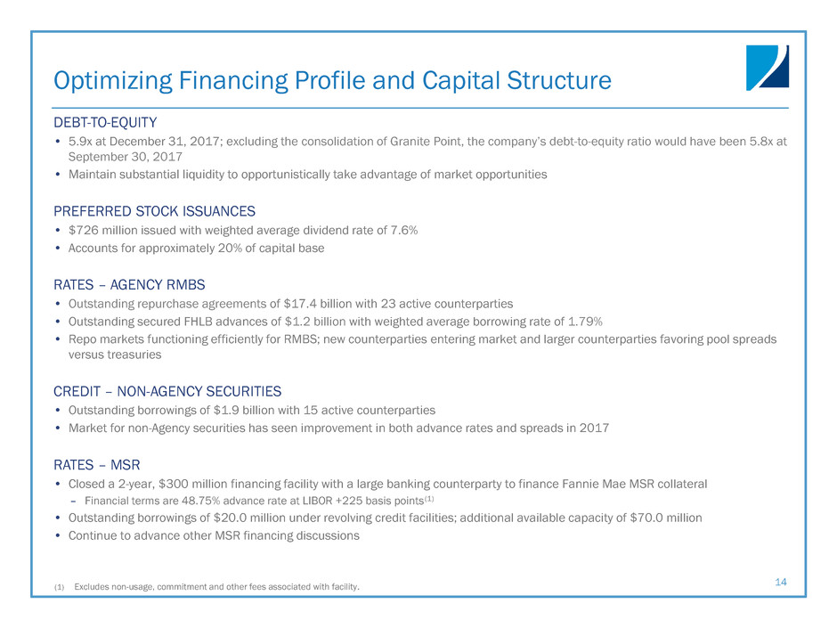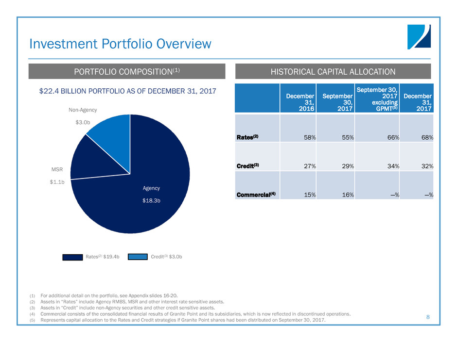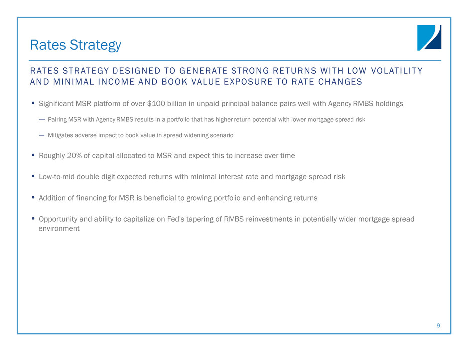 1) Assets in “Rates” include Agency RMBS, MSR and other interest rate sensitive assets. Assets in “Credit” include non-Agency securities and other credit sensitive assets.