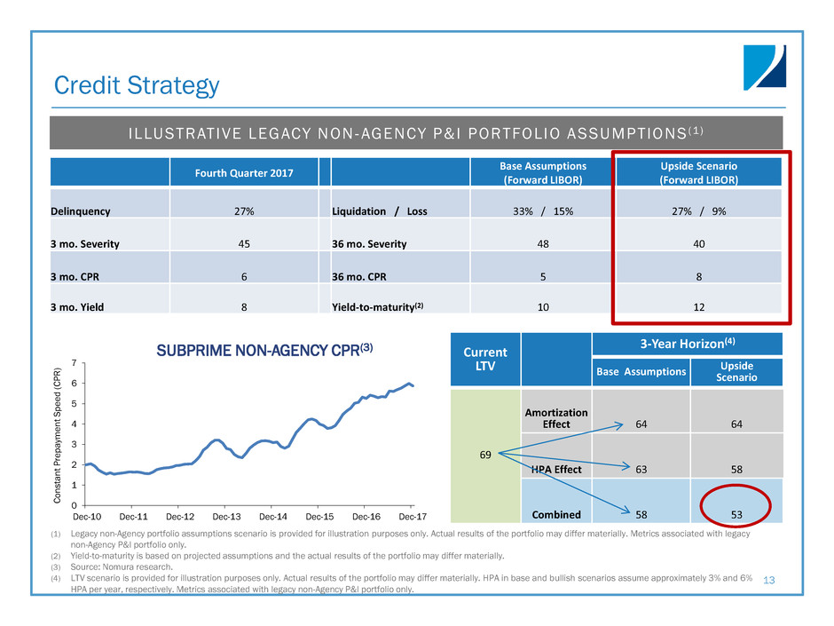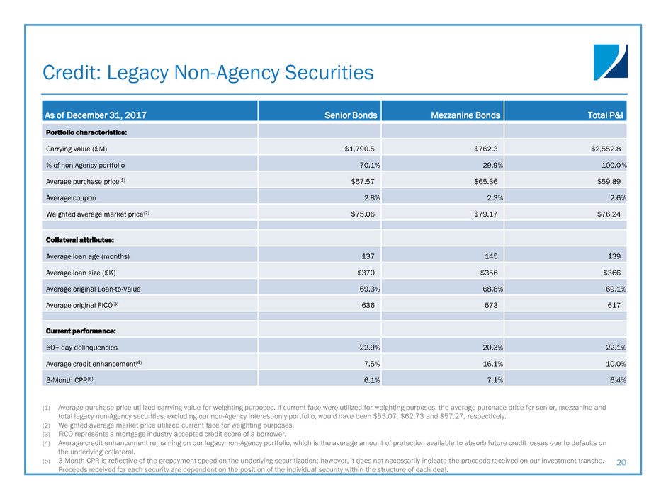 (4) Average credit enhancement remaining on our legacy non-Agency portfolio, which is the average amount of protection available to absorb future credit losses due to defaults on