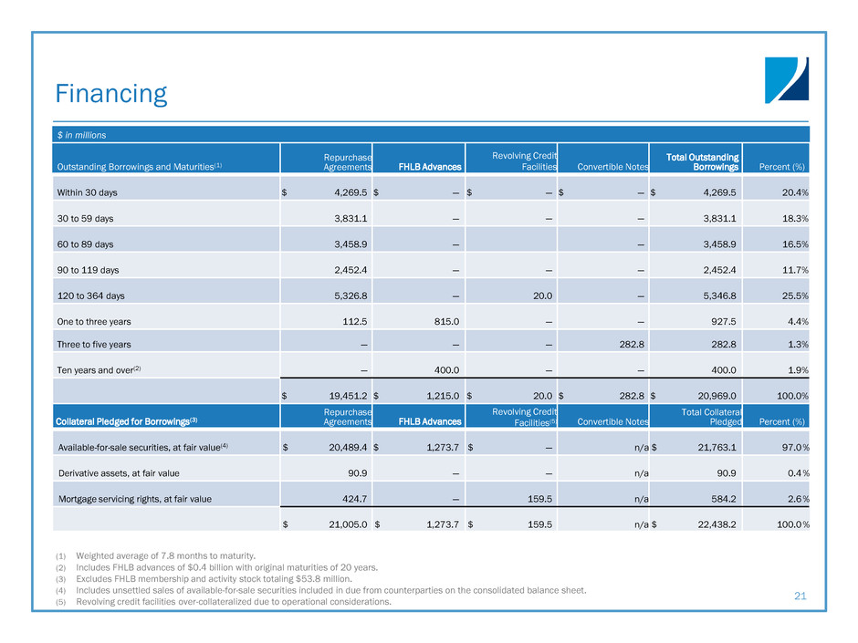 (2) Includes FHLB advances of $0.4 billion with original maturities of 20 years.