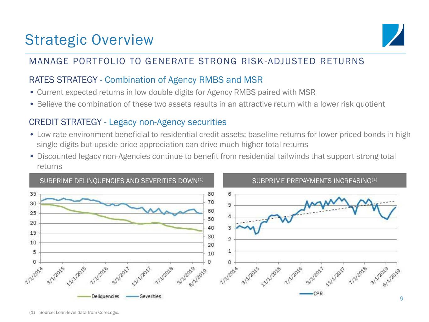Strategic Overview MANAGE PORTFOLIO TO GENERATE STRONG RISK-ADJUSTED RETURNS RATES STRATEGY - Combination of Agency RMBS and MSR • Current expected returns in low double digits for Agency RMBS paired with MSR • Believe the combination of these two assets results in an attractive return with a lower risk quotient CREDIT STRATEGY - Legacy non-Agency securities • Low rate environment beneficial to residential credit assets; baseline returns for lower priced bonds in high single digits but upside price appreciation can drive much higher total returns • Discounted legacy non-Agencies continue to benefit from residential tailwinds that support strong total returns SUBPRIME DELINQUENCIES AND SEVERITIES DOWN(1) SUBPRIME PREPAYMENTS INCREASING(1) 9 (1) Source: Loan-level data from CoreLogic.